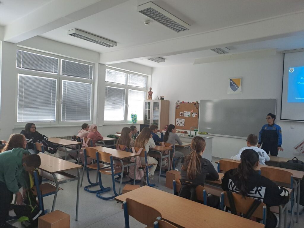 Također, realizirana je i važna tema ovog mjeseca a to je “Zloupotreba pirotehničkih sredstava” u sva tri deveta odjeljenja IX-1,2,3. od strane policajke Mire Šljivić.
