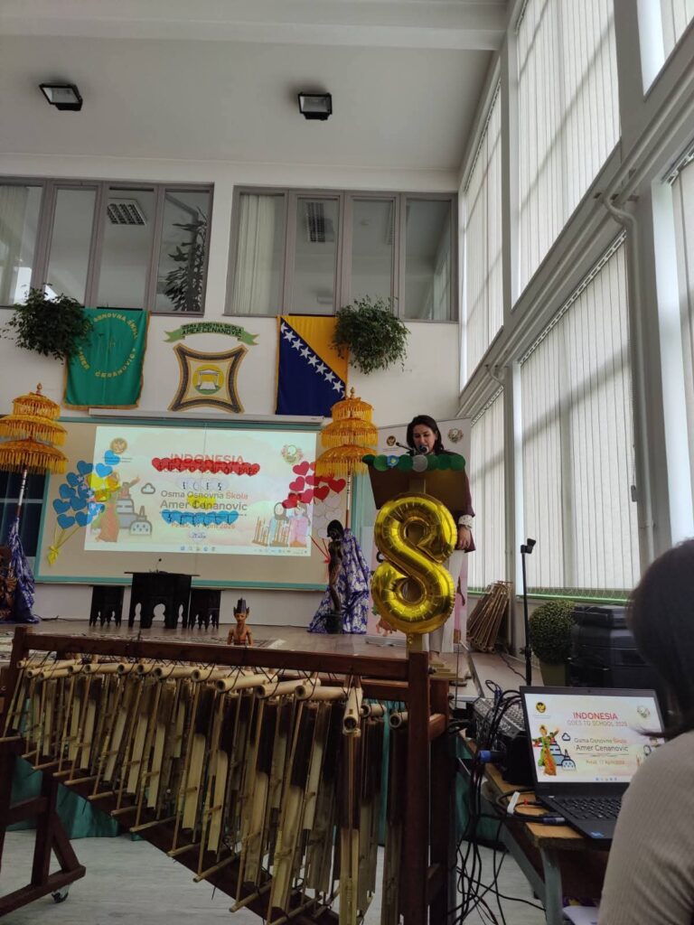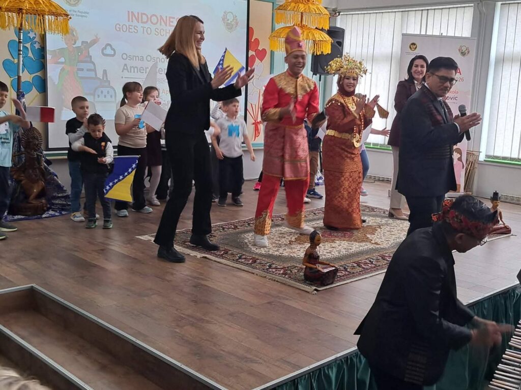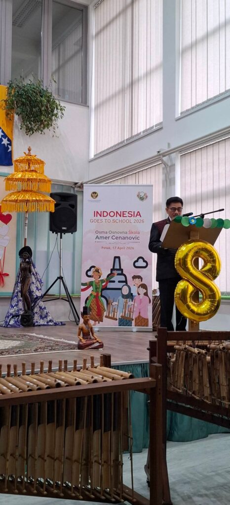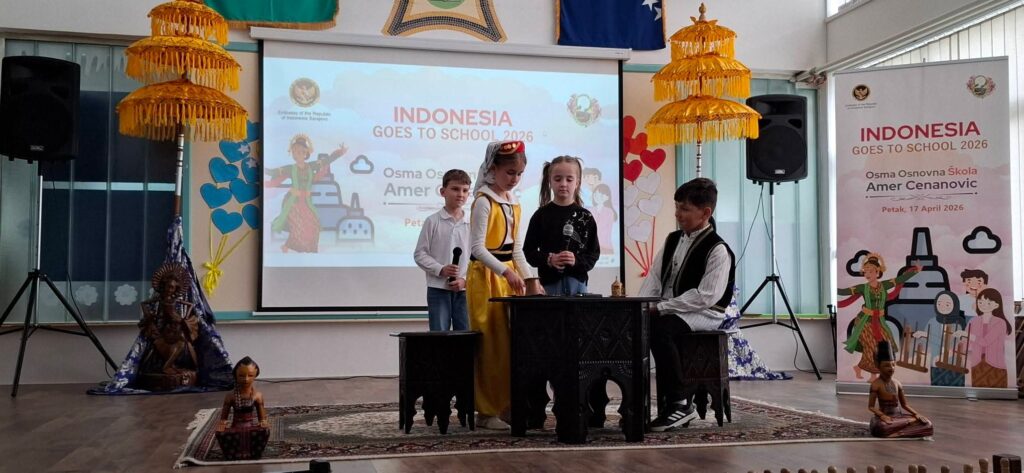 U JU Osma osnovna škola „Amer Ćenanović“ Ilidža danas je uspješno realizovan značajan međunarodni događaj „Indonesia Goes to School 2026“, koji je našu školu pretvorio u mjesto susreta kultura, znanja i zajedništva. Učenici su imali priliku učestvovati u bogatom i raznovrsnom programu kroz koji su na poseban, interaktivan i zanimljiv način upoznali kulturu i tradiciju Indonezije. Posebno se izdvojila realizacija nastavnih sadržaja iz muzičke kulture za učenike osmog razreda, gdje su primijenjeni savremeni i inovativni oblici rada, usmjereni na iskustveno učenje i aktivno učešće učenika.Veliko oduševljenje i zadovoljstvo pokazali su upravo učenici, koji su s radošću učestvovali u aktivnostima, posebno u interaktivnim muzičkim radionicama i upoznavanju sa tradicionalnim instrumentima. Njihova angažovanost, osmijesi i pozitivna energija bili su najbolji pokazatelj uspješnosti ovog događaja.Događaju je prisustvovao i ambasador Republike Indonezije u Bosni i Hercegovini, koji je svojim aktivnim učešćem dodatno obogatio program i ostavio snažan utisak na učenike i prisutne goste.Pored učenika naše škole, događaju su prisustvovali i učenici Treće osnovne škole Ilidža, čime je dodatno naglašena važnost saradnje i zajedničkog učenja.Cjelokupan događaj protekao je u izuzetno pozitivnoj i svečanoj atmosferi, a zadovoljstvo su izrazili i gosti i domaćini. Ovakvi susreti predstavljaju poseban doprinos razvoju škole i obogaćivanju odgojno-obrazovnog procesa, te ostaju kao jedno od lijepih i nezaboravnih iskustava za sve učesnike.