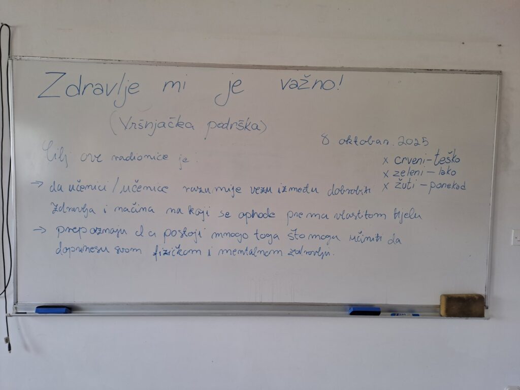 Dana 8. oktobra 2025. godine stručna služba škole realizirala je radionicu „Zdravlje mi je važno“ s učenicima četvrtih razreda, u okviru školskog Programa vršnjačka podrška.